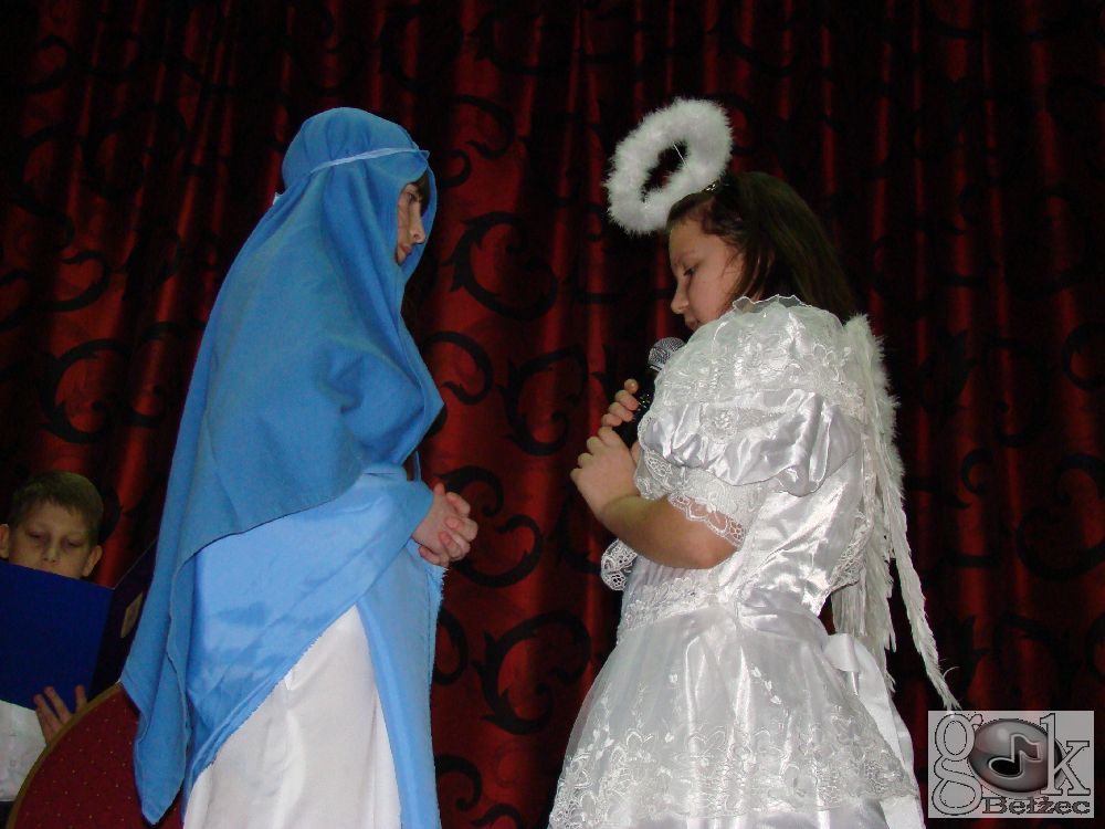 Po nich na scenie pojawiła się Julka Stepaniuk z Lubyczy Królewskiej, która zaśpiewała dwie kolędy. Następnie publiczność mogła obejrzeć Jasełka w wykonaniu dzieci ze Szkoły Podstawowej w Bełzcu, które przygotowane były do występu przez Panią Dorotę Karwańską – Mazurkiewicz. Na program Jasełek złożyły się scenki przedstawiające wędrówkę Maryi i Józefa w poszukiwaniu miejsca dla narodzin Jezusa oraz kolędy, które dzieci wykonywały wspólnie, a dwie kolędy solo zaśpiewał Szymon Kuśmierczak. Wszyscy występujący dostali na koniec przeglądu pamiątkowe dyplomy a wręczała je Sekretarz Gminy Bełżec Alicja Kopczan. Całość imprezy pięknie poprowadziła Kinga Cybulska, harcerka z 43. Drużyny Harcerskiej „Zośka”.