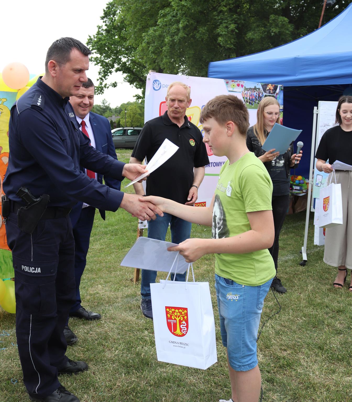 Podczas wydarzenia odbyło się także wręczenie nagród konkursu Wolni od Uzależnień. Laureaci odebrali nagrody i dyplomy z rąk Wójta Gminy Bełżec Andrzeja Adamka, Kierownika Gminnego Ośrodka Pomocy Społecznej w Bełżcu Zbigniewa Duchalskiego, Dyrektora Gminnego Ośrodka Kultury w Bełżcu Karoliny Janik, Starszego Pracownika Socjalnego w Bełżcu Pauliny Krawczyk oraz funkcjonariuszy z Komendy Powiatowej w Tomaszowie Lubelskim.